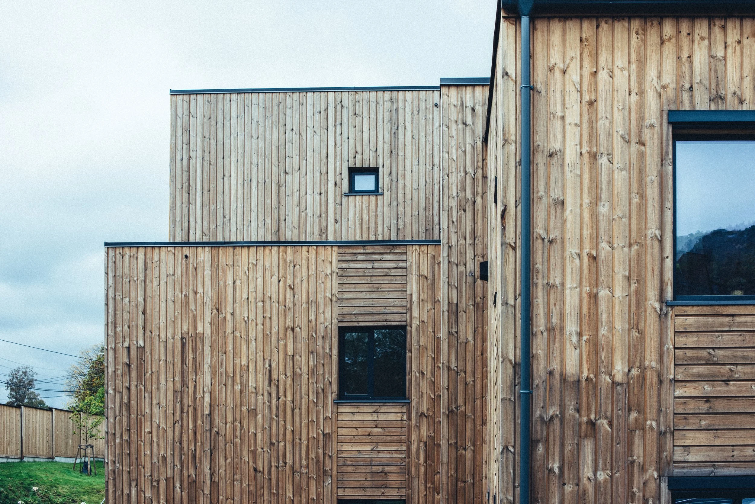 Bygget har fundamentert plate, betongvegger, stål- og hulldekker og klimavegger i plassbygd royalimpregnert trykkledning. Dette ga et spennende og moderne uttrykk, og Østheim Montasje var underentreprenør på alle tømrerarbeider.